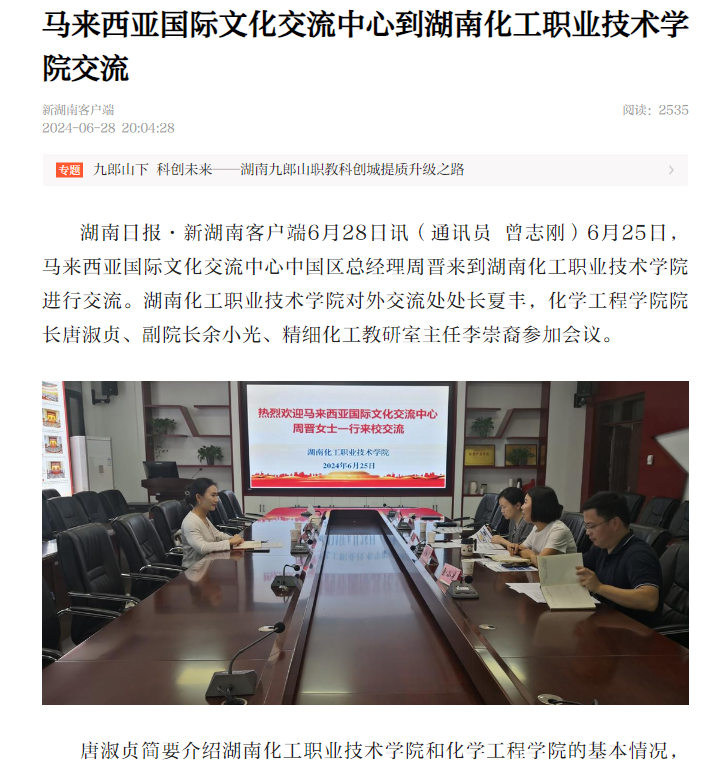 新湖南:马来西亚国际文化交流中心到湖南化工职业技术学院交流