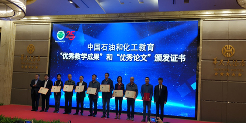 本次年会还对第五届中国石油和化工教育教学优秀成果颁发了证书,湖南化工职院共有三项成果获此殊荣,其中湖南化工职院副校长童孟良教授主持的“‘双主体、六对接、三结合’人才培养模式的探索与实践”获“特等”认定并展出。