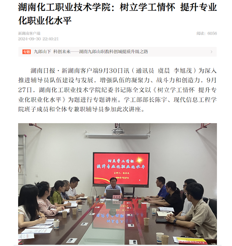 新湖南:湖南化工职业技术学院:树立学工情怀 提升专业化职业化水平