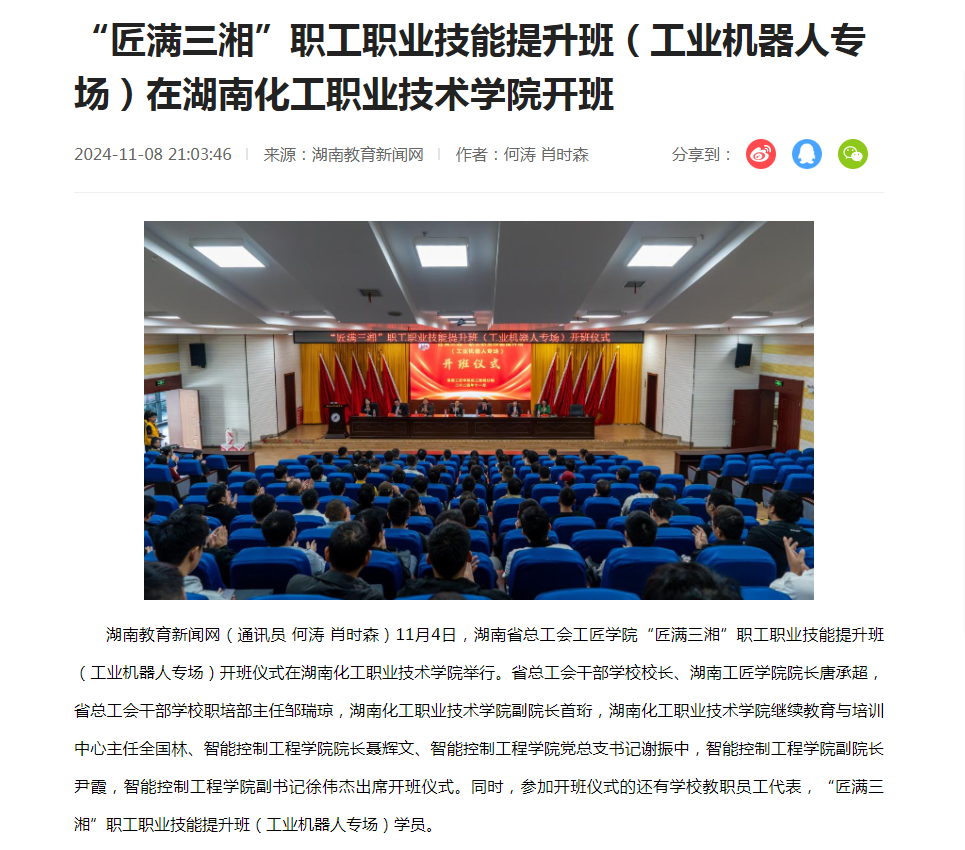 湖南教育新闻网:“匠满三湘”职工职业技能提升班(工业机器人专场)在湖南化工职业技术学院开班