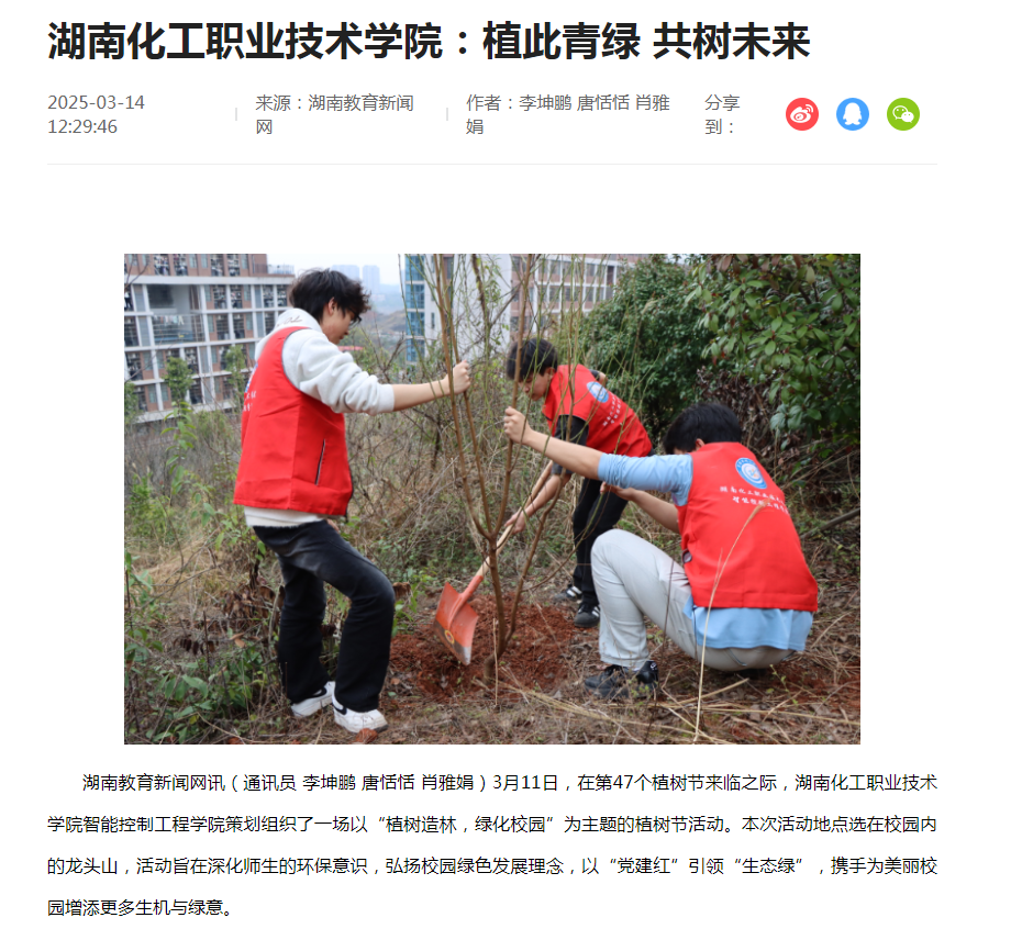 湖南教育新闻讯:湖南化工职业技术学院:植此青绿 共树未来