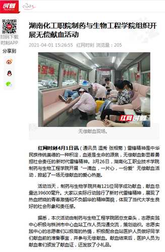 红网:湖南化工职院制药与生物工程学院组织开展无偿献血活动