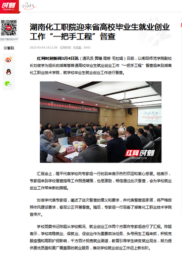 红网:湖南化工职院迎来省高校毕业生就业创业工作“一把手工程”督查