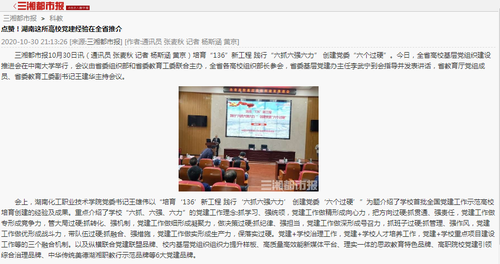 三湘都市报:点赞!湖南这所高校党建经验在全省推介