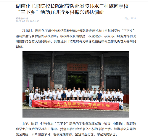 新湖南:湖南化工职院校长陈超带队赴炎陵县水口村慰问学校“三下乡”活动并进行乡村振兴帮扶调研