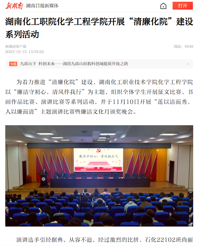 新湖南:湖南化工职院化学工程学院开展“清廉化院”建设系列活动