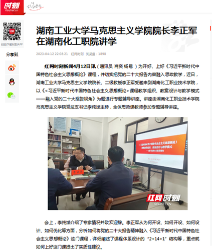 红网:湖南工业大学马克思主义学院院长李正军在湖南化工职院讲学