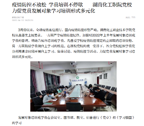 新湖南:疫情防控不放松 学员培训不停歇——湖南化工职院党校力促党员发展对象学习培训形式多元化