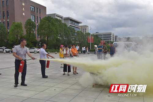 红网时刻新闻6月28日讯(通讯员 毛杜娟)为提高学校消防安全管理水平和发生火灾时的应急处置能力,提高广大师生员工的消防安全意识以及抵御火灾的自防、自救和火场逃生的能力,近日,湖南化工职业技术学院组织全校师生开展消防应急疏散与自救互救演练。学校校长陈超担任演练行动总指挥,全体师生参加演习。
