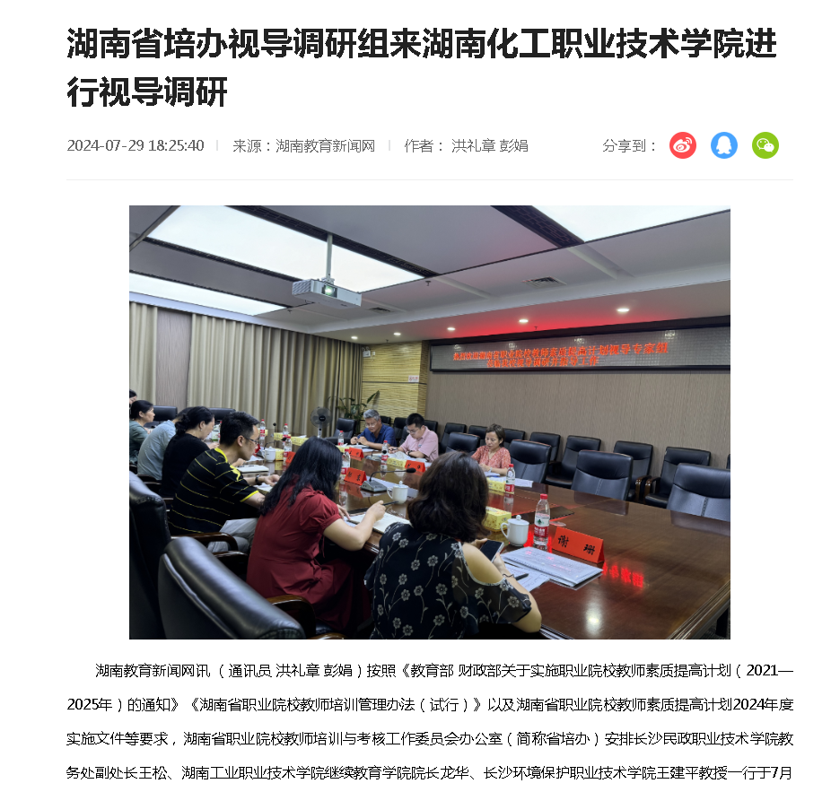湖南教育新闻网:湖南省培办视导调研组来湖南化工职业技术学院进行视导调研