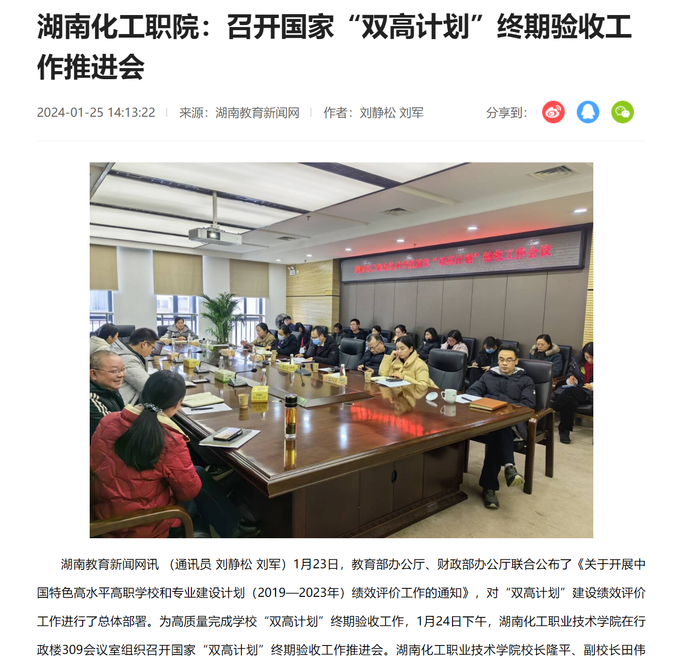 湖南教育新闻网:湖南化工职院:召开国家“双高计划”终期验收工作推进会