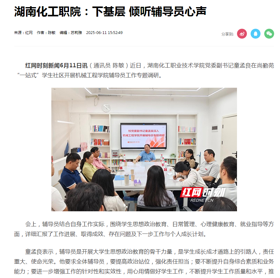 红网:湖南化工职院:下基层 倾听辅导员心声
