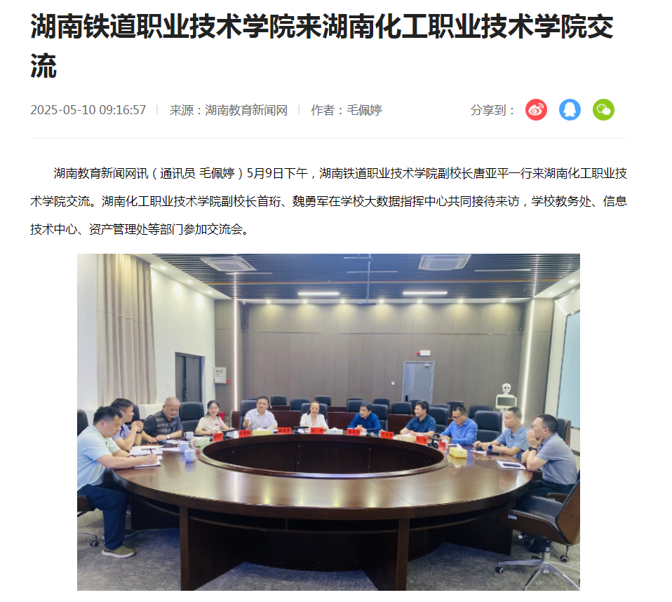 湖南教育新闻网:湖南铁道职业技术学院来湖南化工职业技术学院交流