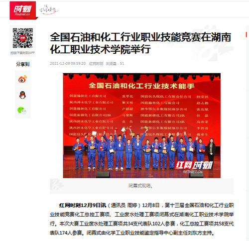 红网:全国石油和化工行业职业技能竞赛在湖南化工职业技术学院举行