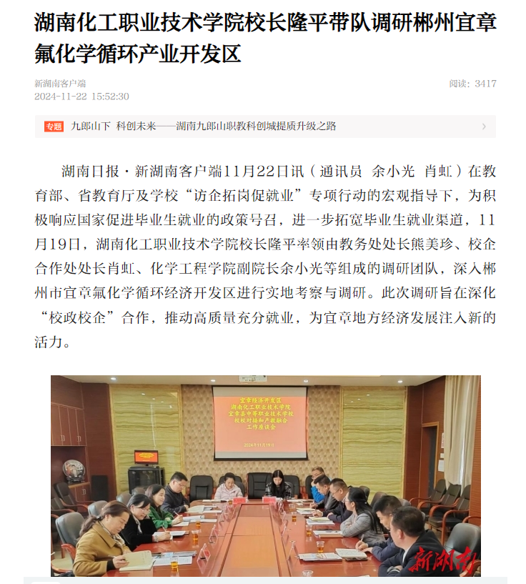 新湖南:湖南化工职业技术学院校长隆平带队调研郴州宜章氟化学循环产业开发区