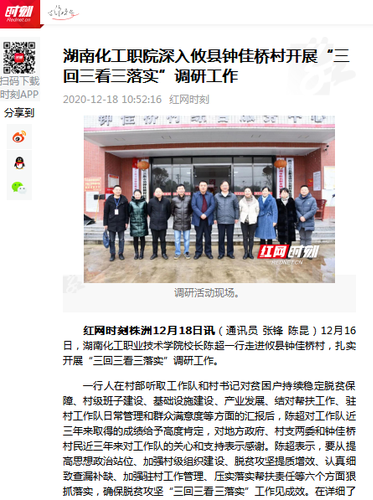 湖南化工职业技术学院切实落实省委《关于深入开展抓党建促脱贫攻坚“三回三看三落实”工作的实施方案》要求和株洲市委会议精神,扎实做好“三回三看三落实”工作,通过系列举措,进一步提升帮扶质量,建立健全帮扶长效机制,推动脱贫攻坚决战决胜,促进脱贫攻坚与乡村振兴有机衔接。