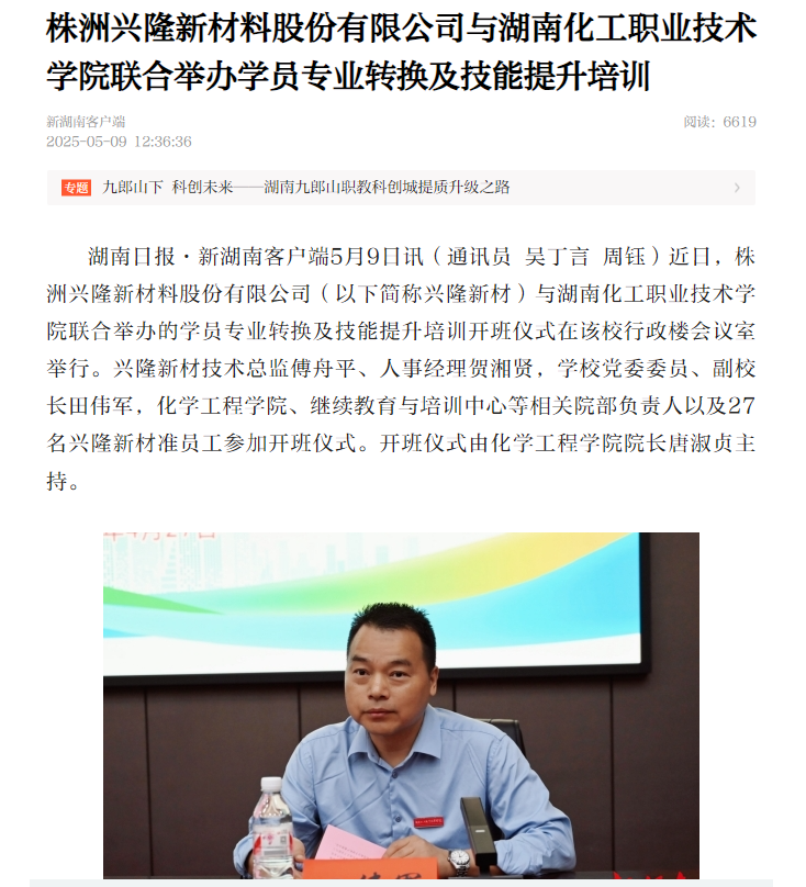 新湖南:株洲兴隆新材料股份有限公司与湖南化工职业技术学院联合举办学员专业转换及技能提升培训