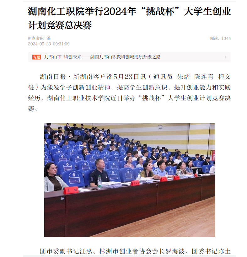 新湖南:湖南化工职院举行2024年“挑战杯”大学生创业计划竞赛总决赛