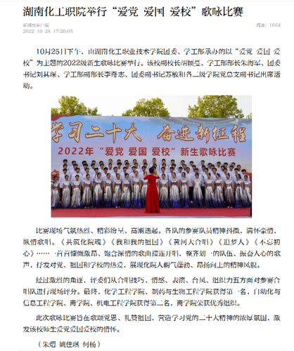 新湖南:湖南化工职院举行“爱党 爱国 爱校”歌咏比赛