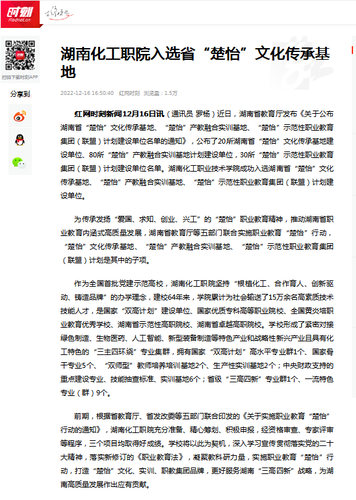 红网:湖南化工职院入选省“楚怡”文化传承基地