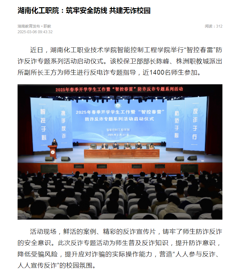 湖南教育发布:湖南化工职院:筑牢安全防线 共建无诈校园