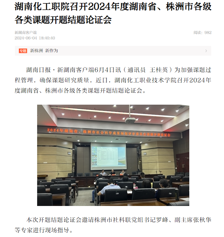 新湖南:湖南化工职院召开2024年度湖南省、株洲市各级各类课题开题结题论证会