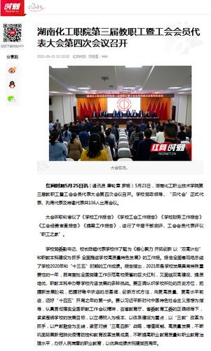 红网:湖南化工职院第三届教职工暨工会会员代表大会第四次会议召开