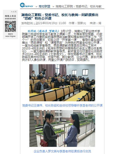湖南教育新闻网:湖南化工职院:党委书记、校长与教师一同研课推出“思政”特色公开课