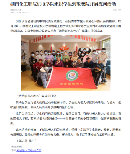 新湖南:湖南化工职院机电学院组织学生到敬老院开展慰问活动