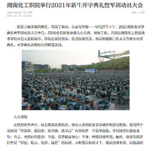新湖南:湖南化工职院举行2021年新生开学典礼暨军训动员大会