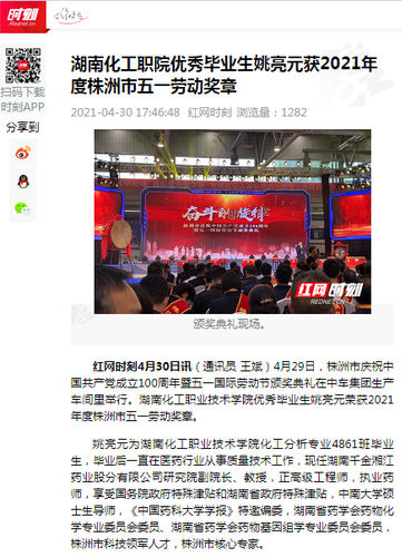 红网:湖南化工职院优秀毕业生姚亮元获2021年度株洲市五一劳动奖章