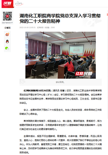 红网:湖南化工职院商学院党总支深入学习贯彻党的二十大报告精神