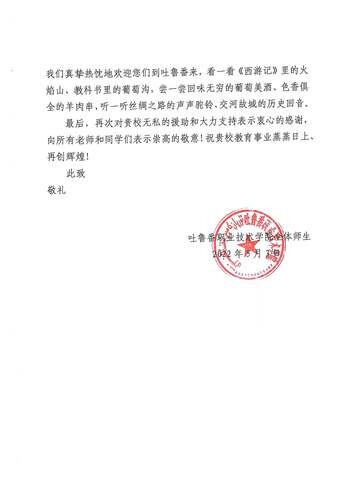 “欢迎来看一看《西游记》里的火焰山”——吐鲁番职业技术学院向湖南化工职业技术学院发来感谢信