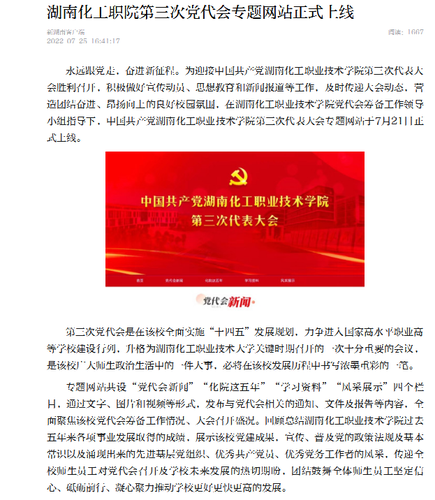 新湖南:湖南化工职院第三次党代会专题网站正式上线