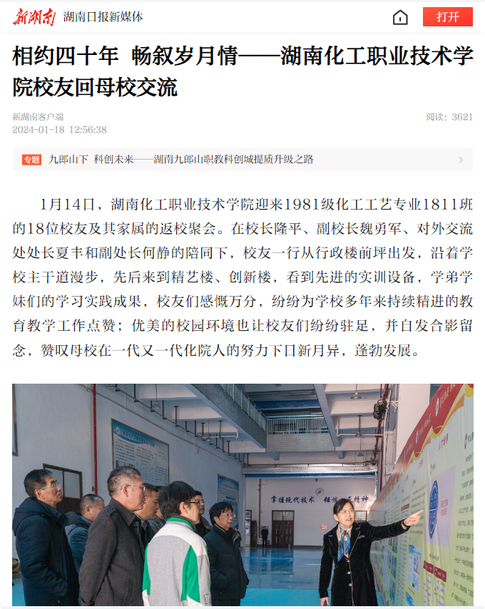 新湖南:相约四十年 畅叙岁月情——湖南化工职业技术学院校友回母校交流
