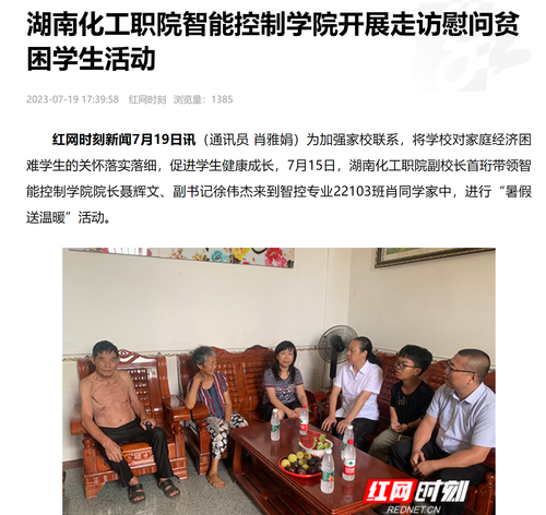 红网:湖南化工职院智能控制学院开展走访慰问贫困学生活动