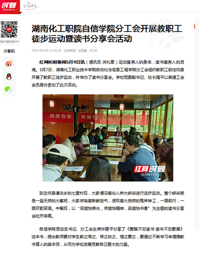 红网:湖南化工职院自信学院分工会开展教职工徒步运动暨读书分享会活动