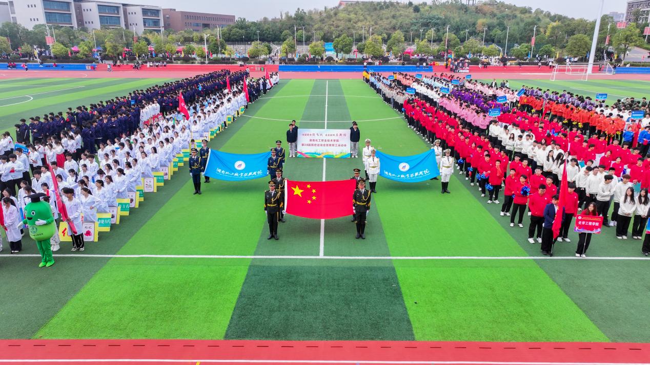 秋风送爽,彩旗猎猎映朝阳;青春集结,壮志凌云赴赛场。11 月 6 日上午,学校田径场人声鼎沸、激情飞扬,我校第 38 届田径运动会暨教职工运动会正式拉开帷幕。本次运动会以“创建职本迎飞跃,走在前列启新程”为主题,全校师生与教职工齐聚一堂,用热血与拼搏诠释体育精神,用奋进与团结书写化院新篇。学校全体校领导出席开幕式,副校级领导黄金波主持开幕式。