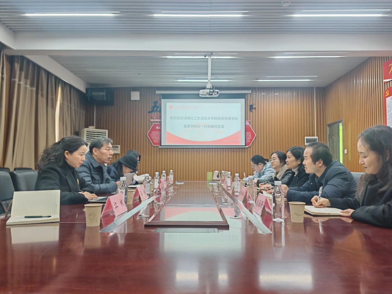 为持续推进产教融合创新发展,优化专业建设布局,12月26日,我校商务贸易学院院长莫兼学率队赴湖南现代物流职业技术学院开展专题调研。湖南现代物流职业技术学院物流管理学院副院长谭新明(主持工作)、冯梅、曾恋之等热情接待并进行深入交流。