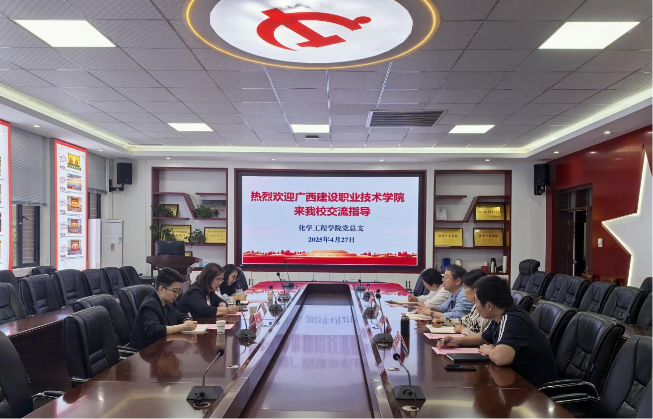 4月27日,广西建设职业技术学院设备与环境学院党总支书侯文淑一行来我校化学工程学院开展党建、专业群建设等经验交流。