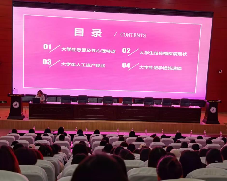 讲座中,何美芳以“大学生恋爱态度和性心理”为主题,以自身多年临床经验,结合大学生性健康调研数据,科普避孕知识、性传播疾病预防及HPV疫苗接种重要性等,从多角度展开科普。通过数据分析与图片展示,帮助女生打破“谈性色变”的认知壁垒,强调“预防优于治疗”的健康理念。